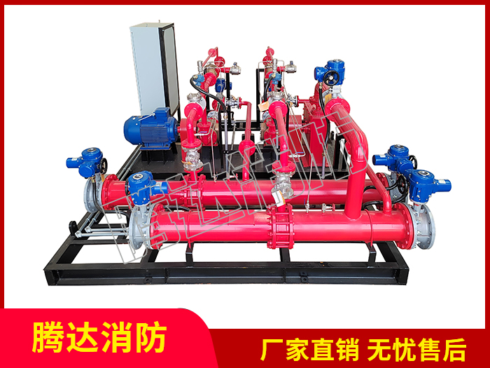 平衡式泡沫比例混合装置主要由常压泡沫液储罐、平衡阀、安全阀、泡沫比例混合器、泡沫泵、泡沫泵控制柜、支架及管道附件等集成为一体,结构紧凑。